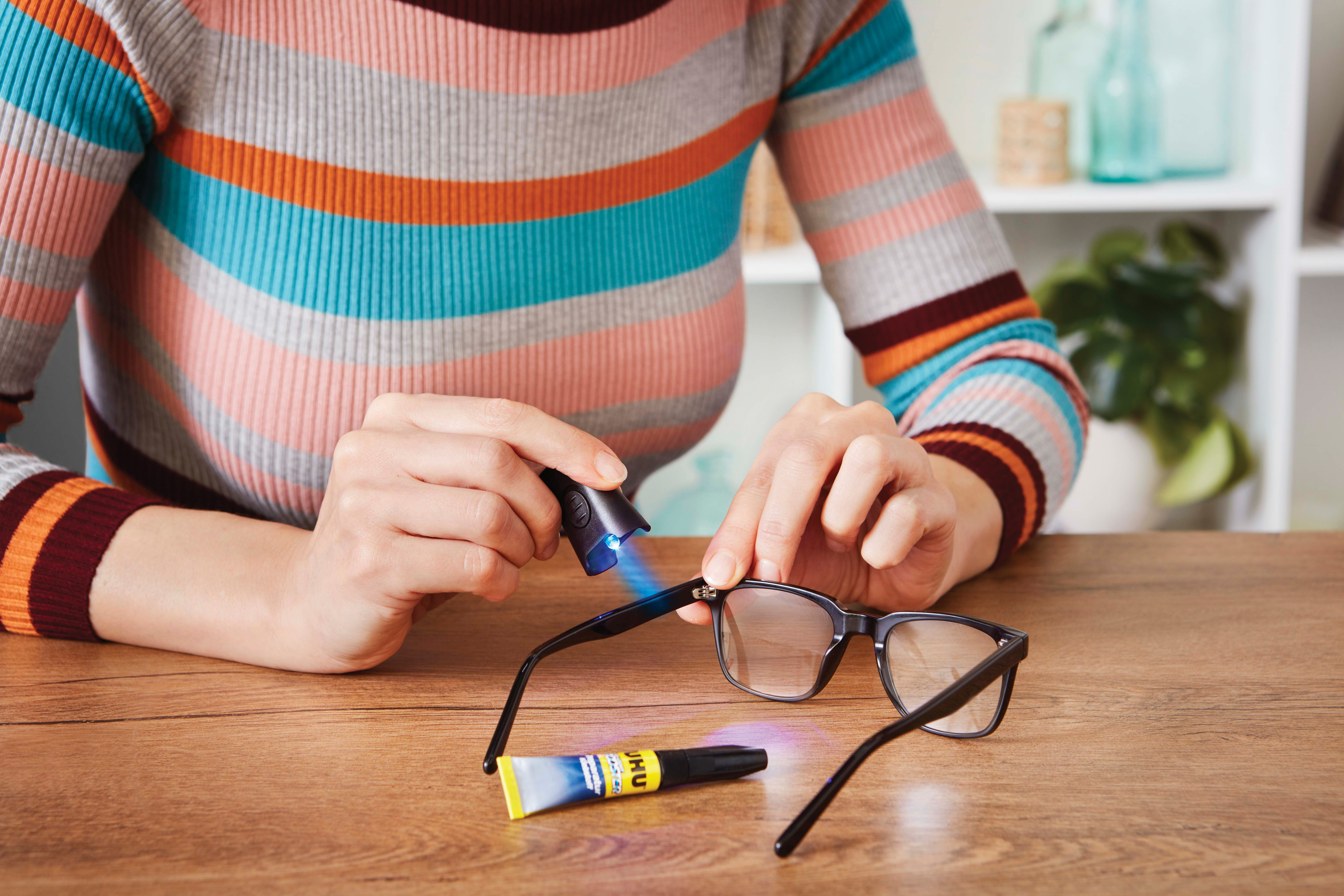 UHU LED-LIGHT BOOSTER Reparatur Klebstoff. Klebt, füllt und versiegelt extrem schnell und stark mit Hilfe der integrierten LED-Lampe auf Knopfdruck binnen weniger Sekunden. Produktverwendung: Kunststoff, Porzellan, Glas uvm.. Behälterart/-inhalt: Tube mit 3 g und LED-Licht mit UV mit 3 g.