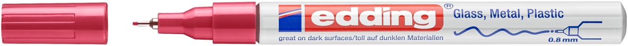 Glanzlackmarker für stark deckendes, permanentes und wischbeständiges Schreiben und Dekorieren auf glatten und sogar dunklen und transparenten Materialien, z. B. Glas, Metall, Kunststoff und beschichtetes Papier. Die metallgefasste Kunststoffspitze hat eine Strichbreite von 0,8 mm. Die lackähnliche Pigmenttinte trocknet schnell, ist witterungs- und extrem lichtbeständig, geruchsarm sowie abriebbeständig. In 11 verschiedenen Farben erhältlich. Ersatzspitzen sind erhältlich. Die Tinte ist geruchsarm und ohne Zusatz von Toluol/Xylol. Hochwertiger Aluminiumschaft.