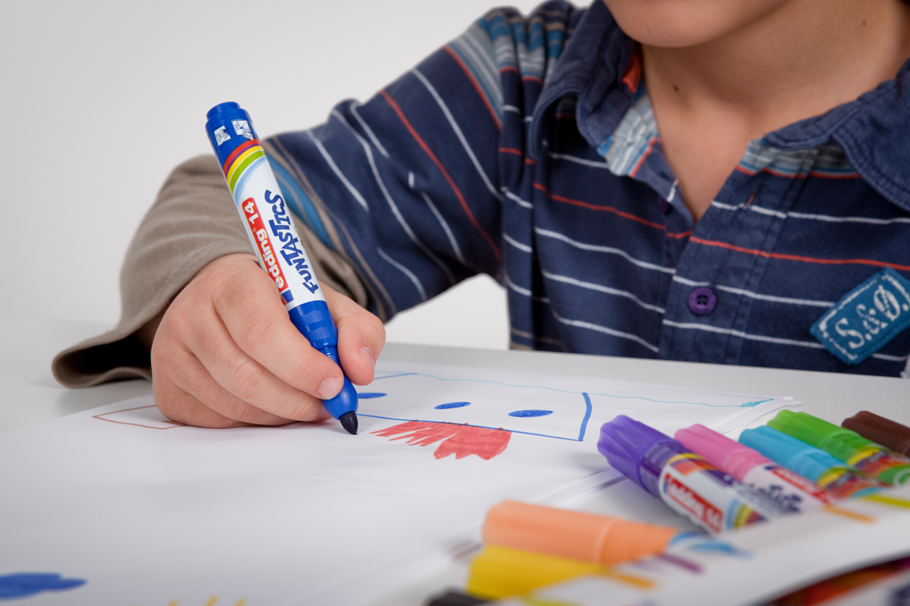 Kinderfasermaler für farbenfrohen Malspaß auf hellem Papier und Karton. Die weiche Rundspitze hat eine Strichbreite von 3 mm. Die wasserbasierte Tinte ist bei 40 °C aus den meisten Textilien auswaschbar. Entspricht CE-Norm für kindgerechtes Spielzeug. Erhältlich in 18 verschiedenen Farben.