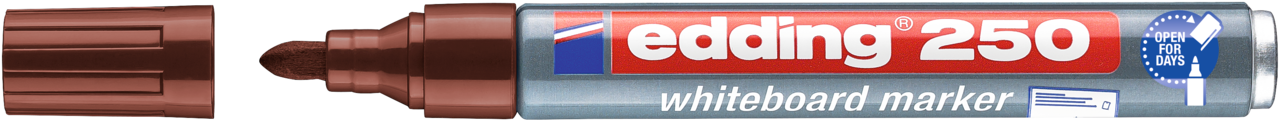 Whiteboardmarker zum Schreiben und Markieren auf Whiteboards, auch für Flipcharts geeignet. Trocken abwischbar von fast allen geschlossenen Oberflächen wie z.B. Emaille und Melamin. Die Rundspitze hat eine Strichbreite von 1,5-3 mm. Dank "cap off" Technologie kann das Produkt bis zu einigen Tagen offen liegen bleiben, ohne auszutrocknen (Prüfklima nach ISO 554). Die Tinte des Whiteboardmarkers ist lichtbeständig und schnelltrocknend. Erhältlich in 10 verschiedenen Farben. Nachfüllbar in den Farben schwarz, rot, blau und grün. Ersatzspitzen sind erhältlich. Ohne Zusatz von Butylacetat. Hochwertiger Aluminiumschaft.