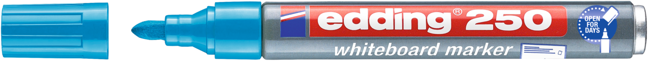 Whiteboardmarker zum Schreiben und Markieren auf Whiteboards, auch für Flipcharts geeignet. Trocken abwischbar von fast allen geschlossenen Oberflächen wie z.B. Emaille und Melamin. Die Rundspitze hat eine Strichbreite von 1,5-3 mm. Dank "cap off" Technologie kann das Produkt bis zu einigen Tagen offen liegen bleiben, ohne auszutrocknen (Prüfklima nach ISO 554). Die Tinte des Whiteboardmarkers ist lichtbeständig und schnelltrocknend. Erhältlich in 10 verschiedenen Farben. Nachfüllbar in den Farben schwarz, rot, blau und grün. Ersatzspitzen sind erhältlich. Ohne Zusatz von Butylacetat. Hochwertiger Aluminiumschaft.