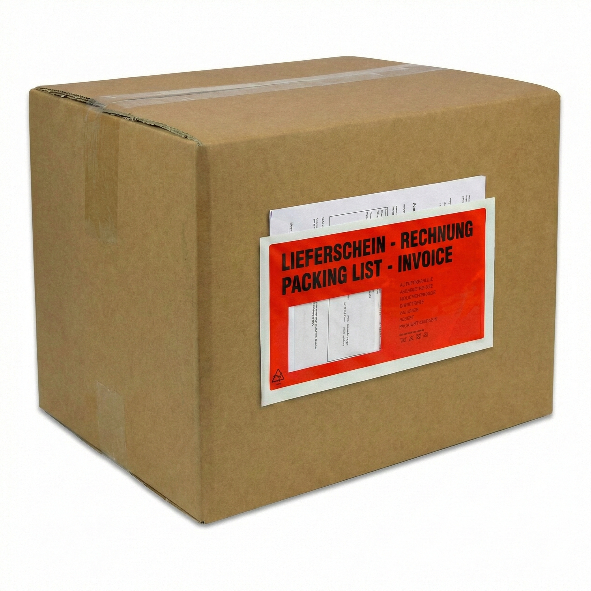 Für gut sichtbare Anbringung auf dem Versandgut, die einfachste Art, Papiere beizulegen, ob es Lieferscheine, Rechnungen oder Mitteilungen zu aktuellen Angeboten sind!