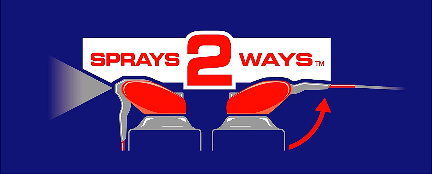 Der integrierte Sprühkopf ermöglicht ein Wechseln zwischen großflächigem und präzisem Sprühen. Das Röhrchen ist fest am Sprühkopf und kann nicht verloren gehen. Für flächiges oder punktgenaues Sprühen wird das Sprührohr einfach nach unten oder oben geklappt.