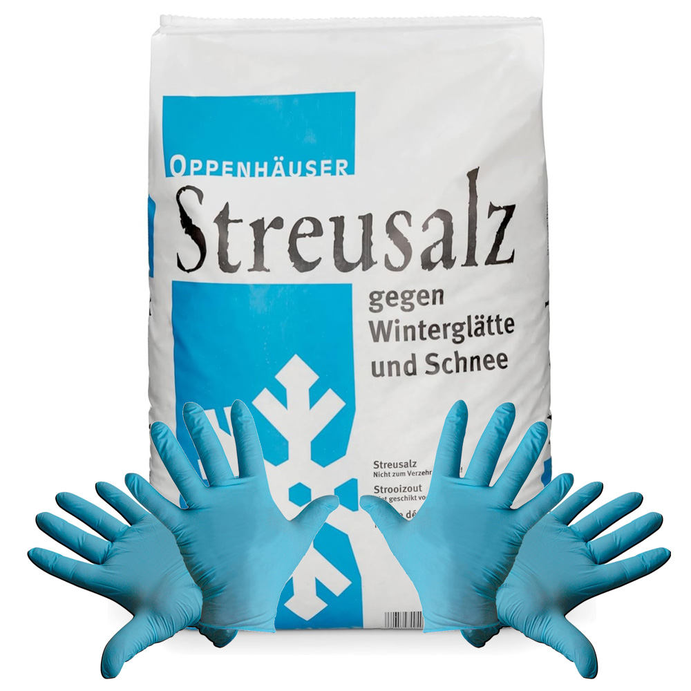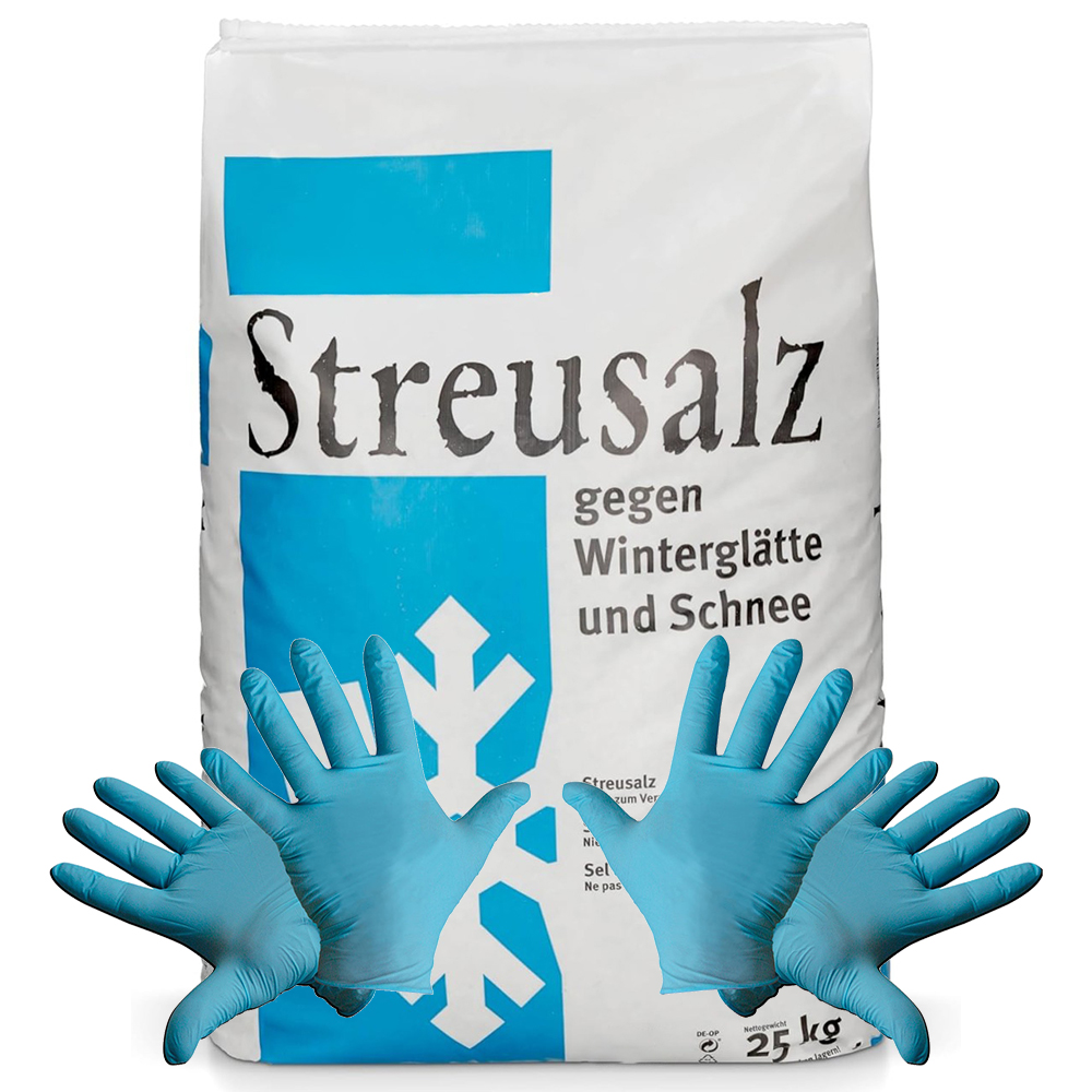 Weiterführende Links zu "Streusalz/Auftausalz grobkörnig 25 kg + 2 paar Einweg Nitril-Handschuhe"