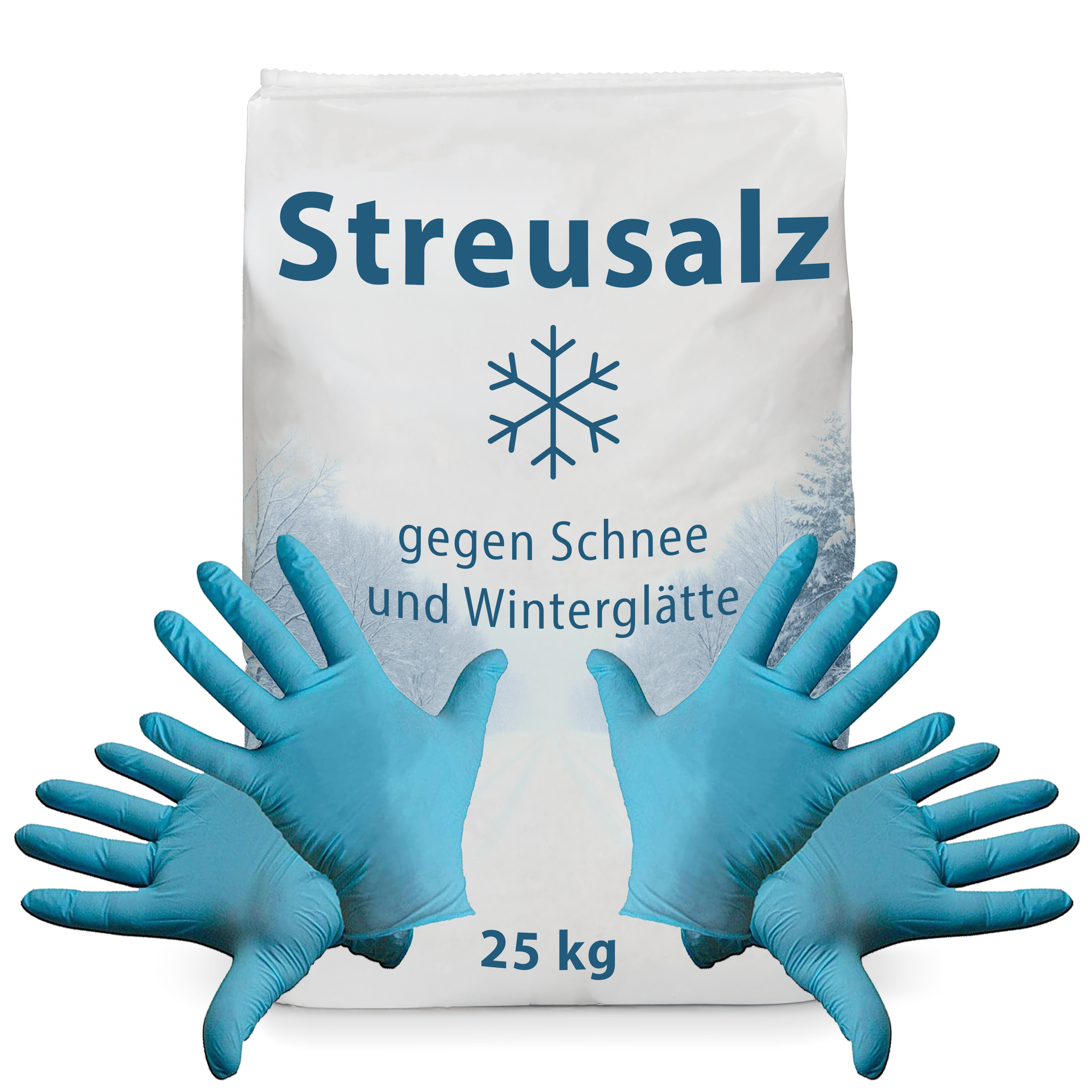 Streusalz/Auftausalz grobkörnig 25 kg + 2 paar Einweg Nitril-Handschuhe