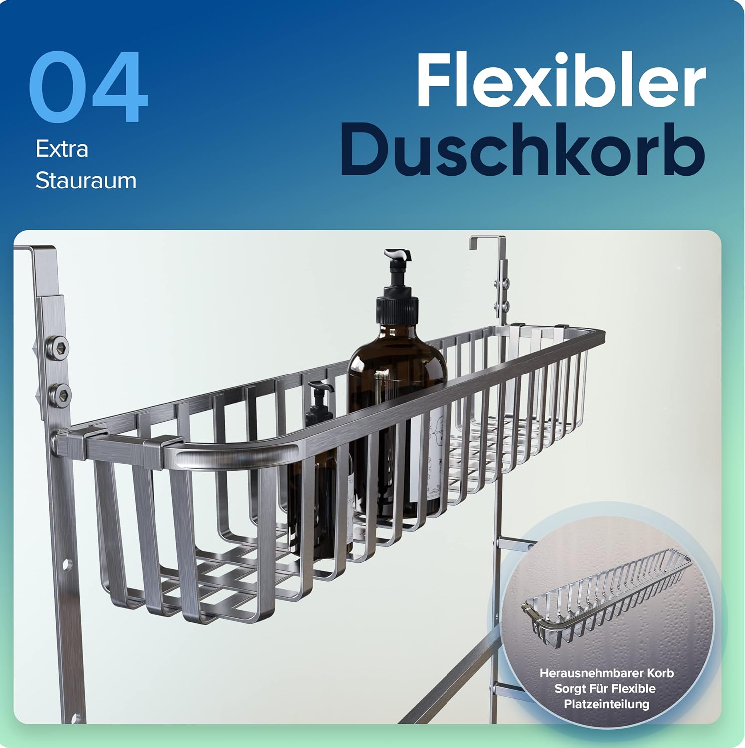 • Flexibler Duschkorb für Shampoo, Duschgel & Co. – herausnehmbar für einfache Reinigung.