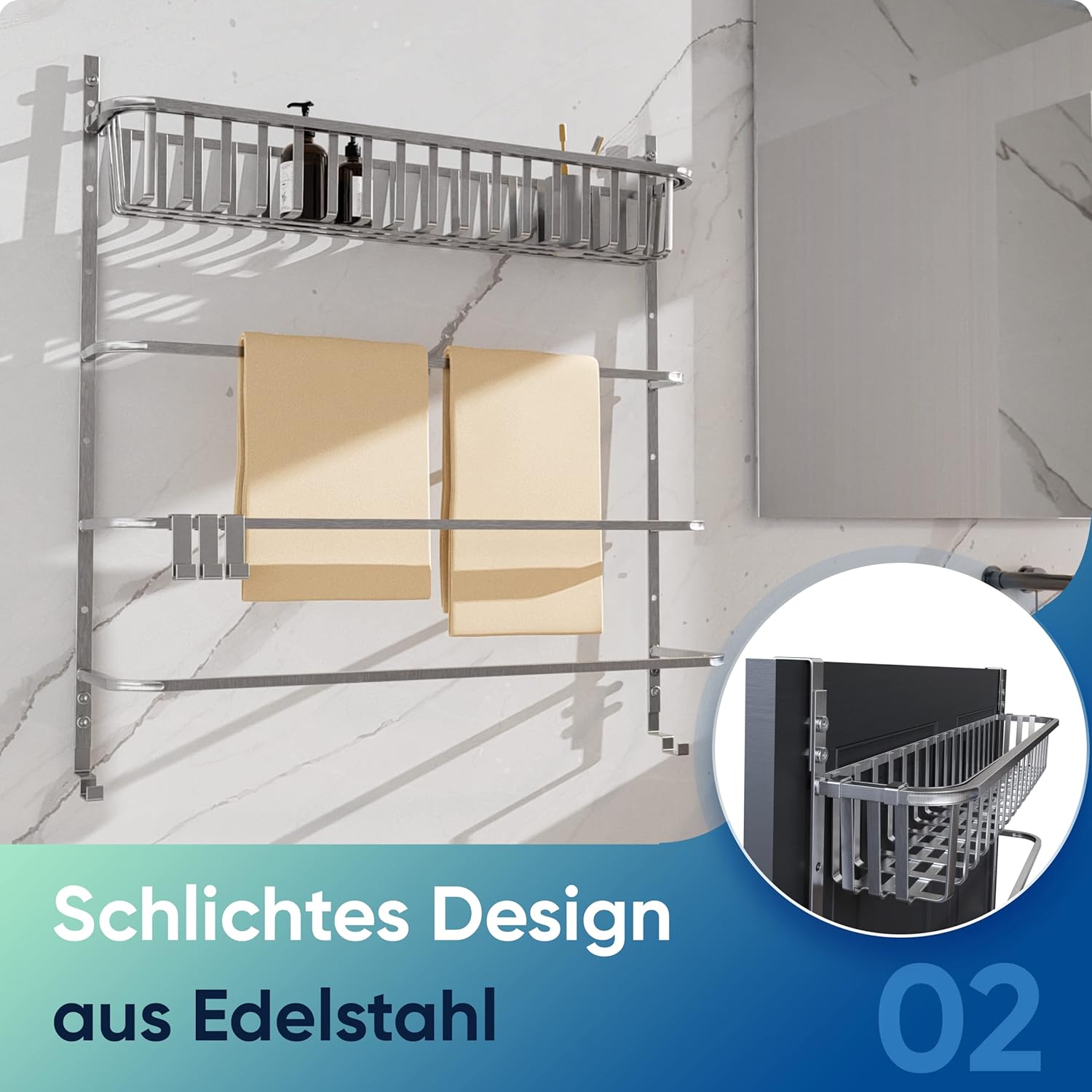 Marastone® Handtuchhalter mit flexiblem Duschkorb – Ordnung & Stil für Ihr Bad