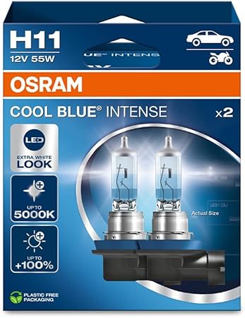 Mit einem kräftigen und sehr hellen extra weißen Licht von bis zu 5.000 K, das durch seinen kühlen Strahl sehr wie eine LED-Lampe aussieht, kommen begeisterte Designfans voll auf ihre Kosten. Die Autolampe bietet auch ein kontrastreiches, tageslichtähnliches Licht, das die Augen weniger belastet als das von Standardlampen. Lampen der Serie OSRAM COOL BLUE INTENSE sind im Vergleich zu den ECE Mindestanforderungen um bis zu 100 % heller.