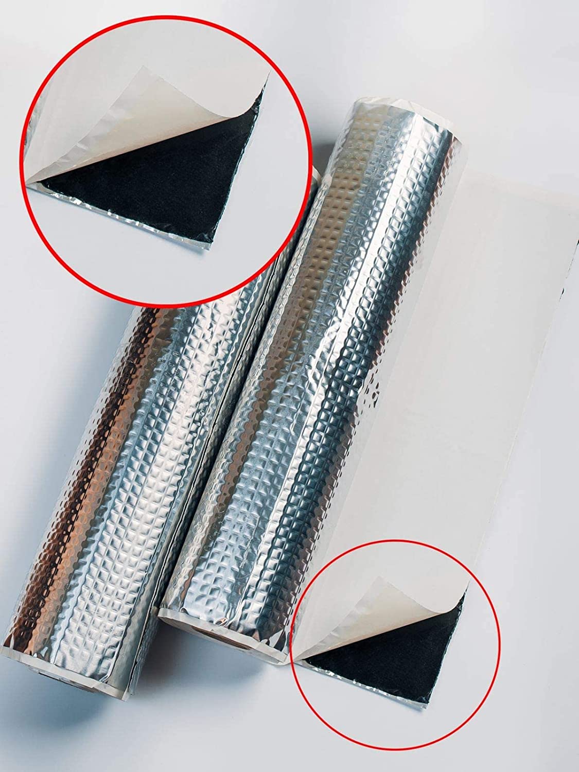 DICKE UND ABMESSUNGEN: Die ABM Alubutyl Anti-Vibrations-Schallschutzmatte hat die Maße 50 cm x 400 cm, insgesamt 2 m2 und eine Dicke von 2 mm (1,9 mm Butyl + 0,1 mm Aluminium).