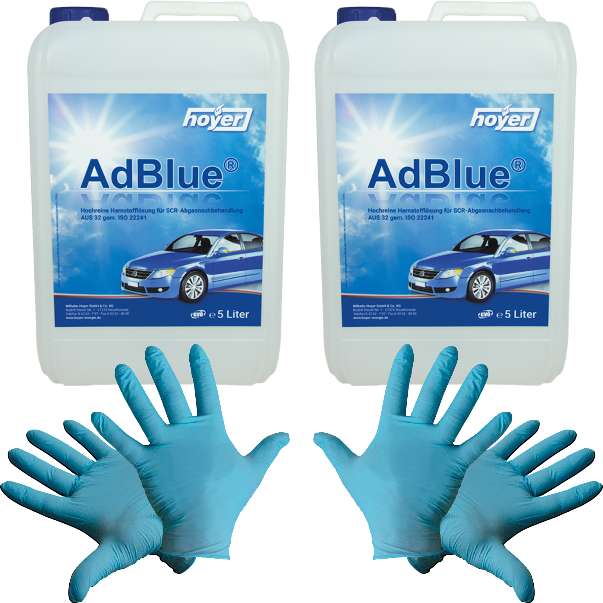 2x Hoyer AdBlue® inkl. Ausgießer 10 L + 2 paar Einweg Nitril-Handschuhe