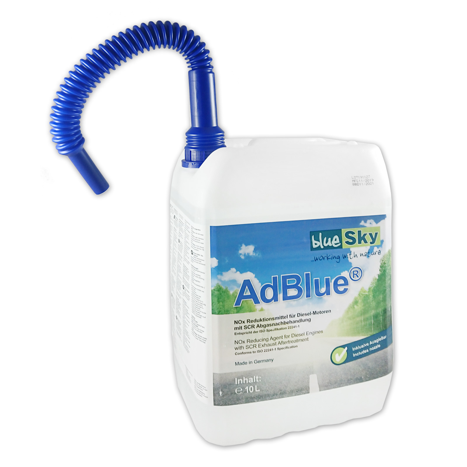 AdBlue® von blueSky nach ISO 22241 ist ein hochreines NOx-Reduktionsmittel für Dieselmotoren mit SCR Katalysatoren welches zur Erfüllung von EURO 4, 5 und 6 Abgasnorm, gemäß AUS 32 (CEFIC) und ISO 22241 dient.