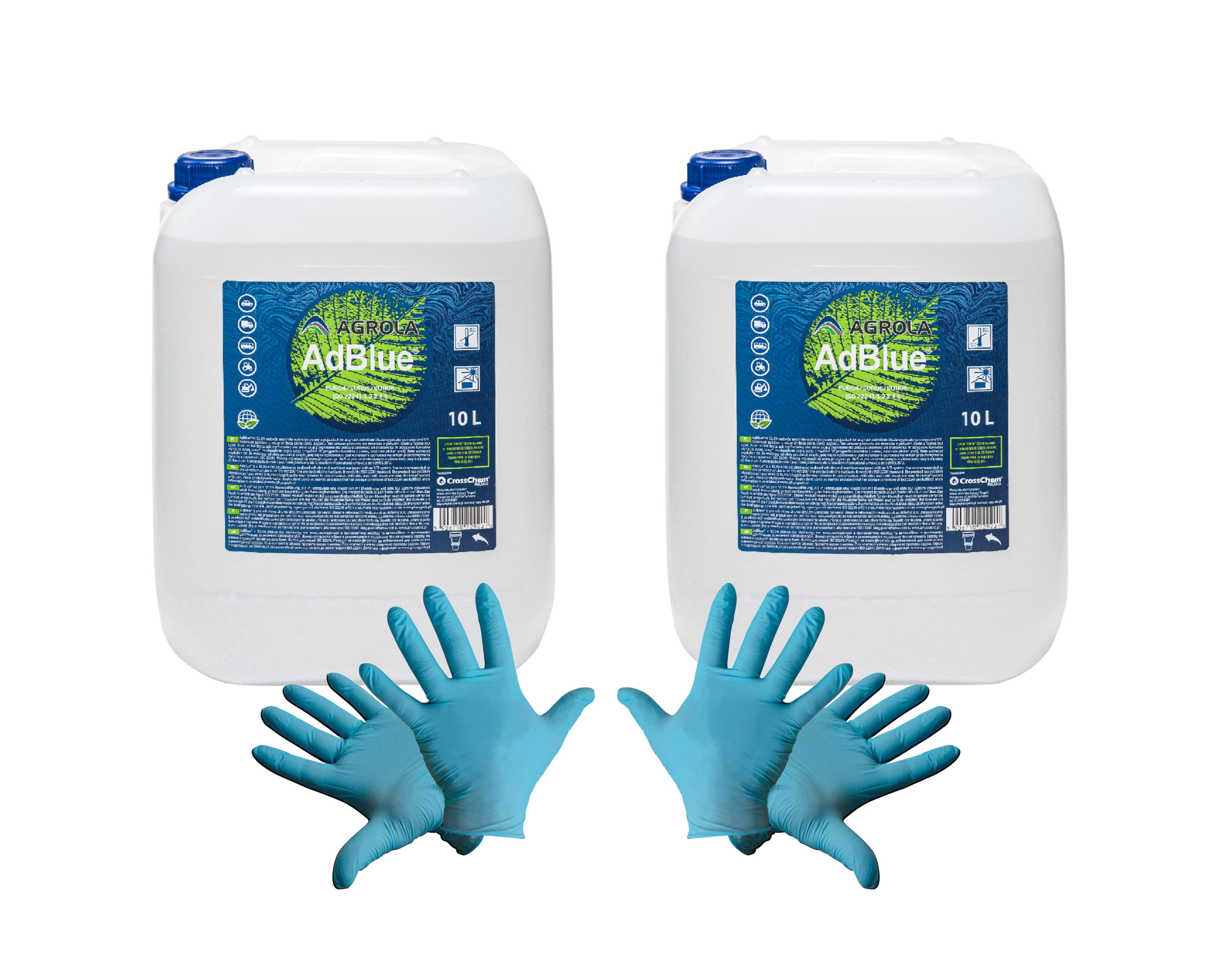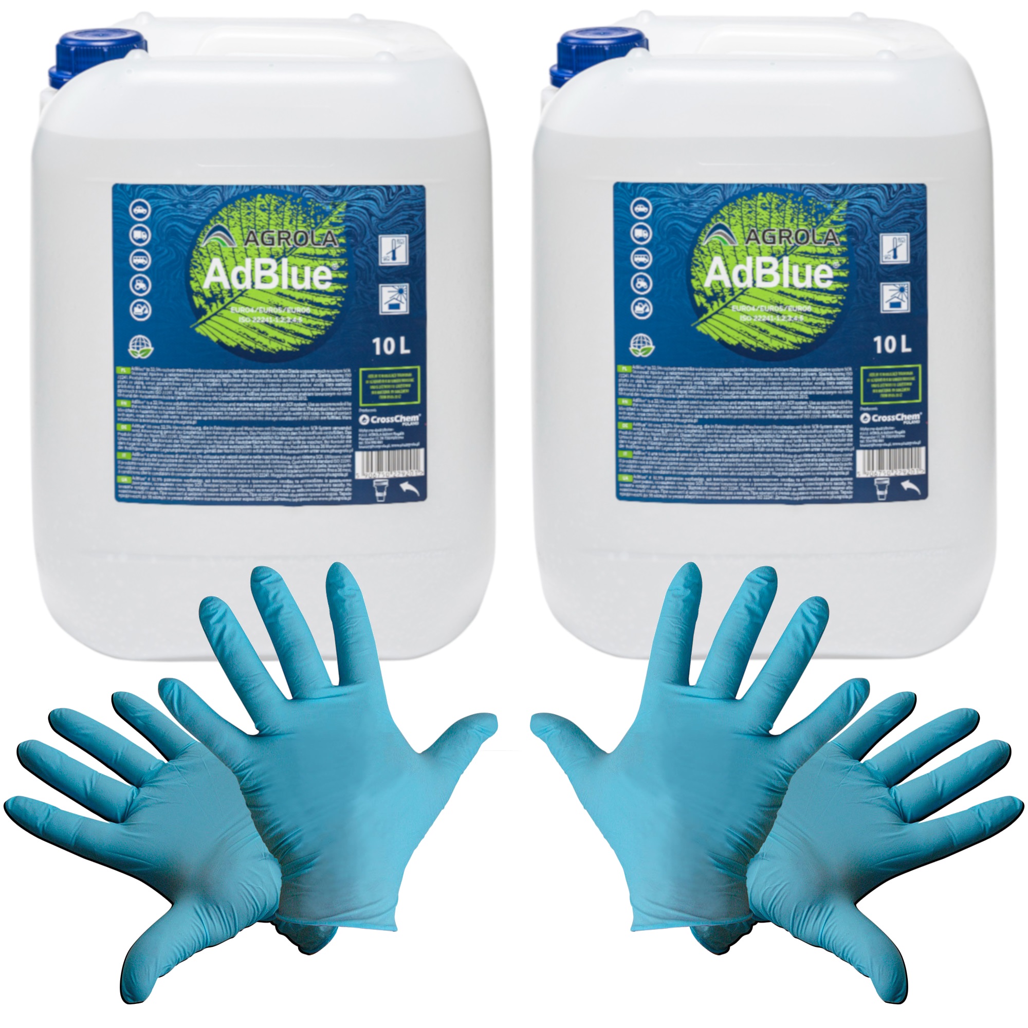 2x AGROLA AdBlue inkl. Ausgießer 10 L + 2 paar Einweg Nitril-Handschuhe XL