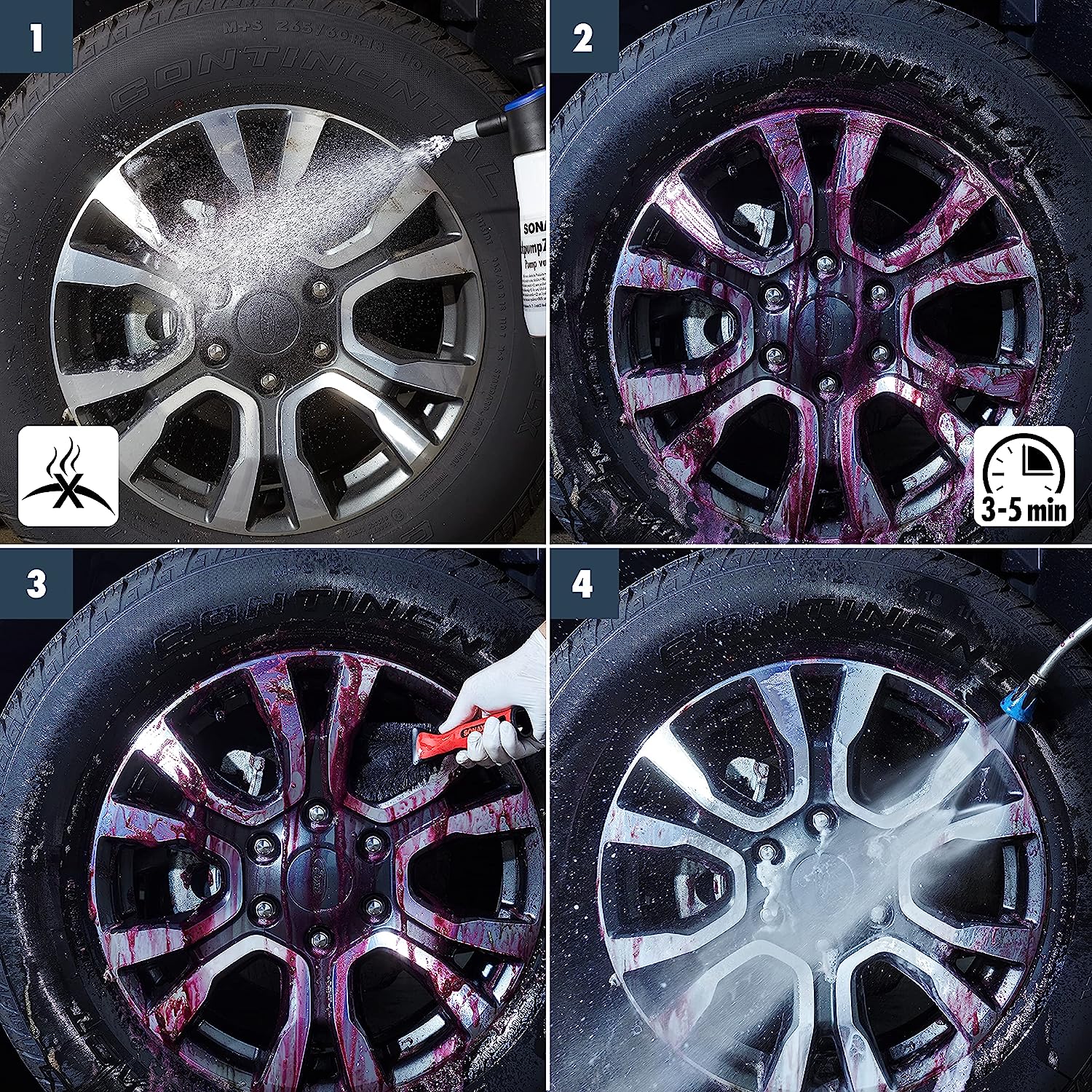- Bei Kontakt mit Verschmutzungen verfärbt sich das SONAX FelgenBeast rötlich und entfaltet seine ganze Reinigungskraft