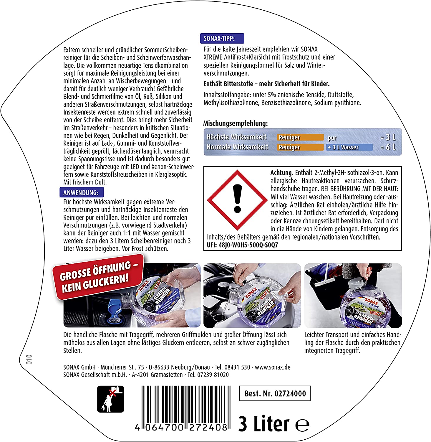 Weiterführende Links zu "SONAX XTREME ScheibenReiniger Sommer gebrauchsfertig 3 L"