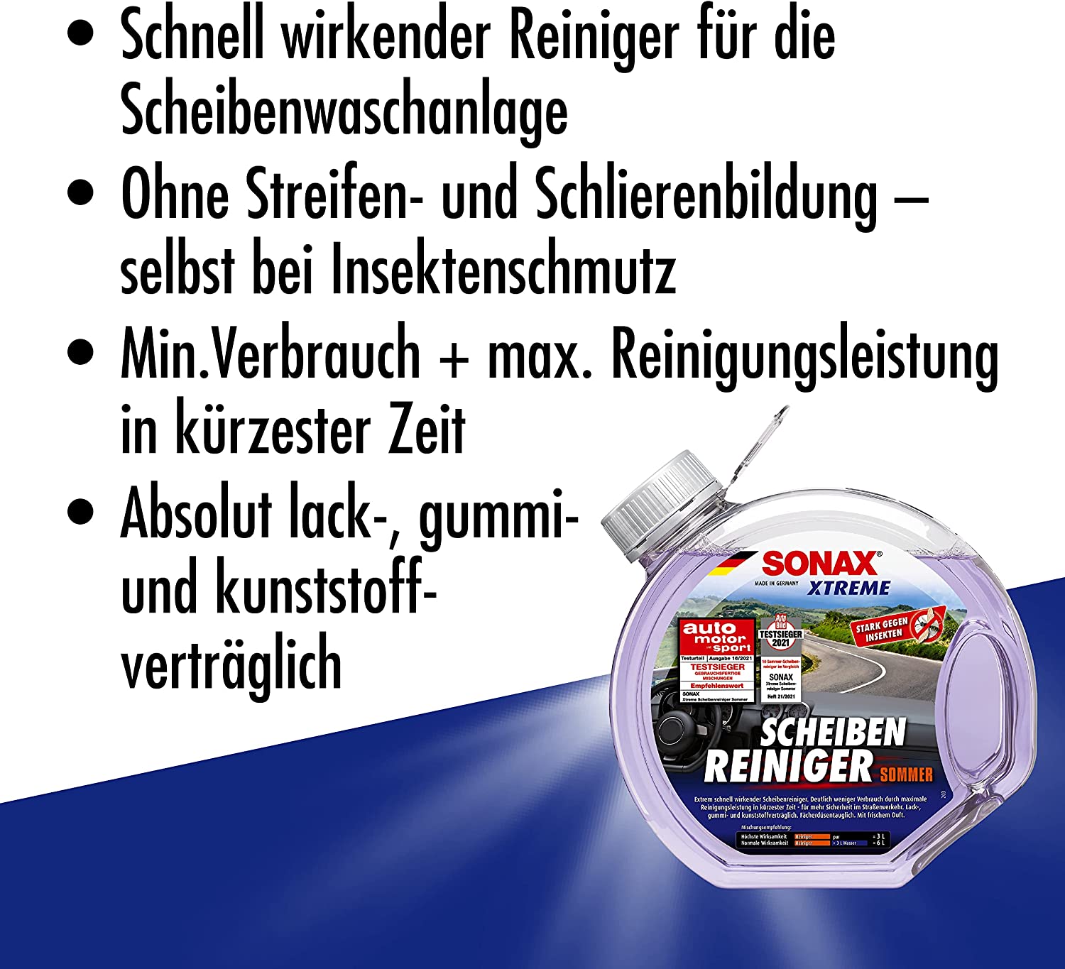 - Extrem schneller und gründlicher Sommer-Scheibenreiniger für die Scheiben- und Scheinwerferwaschanlage