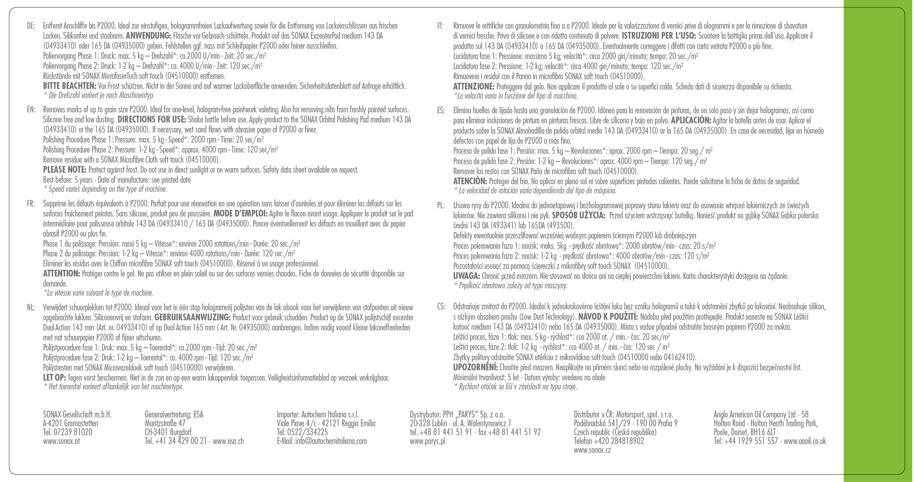 - Entfernt Anschliffe bis Körnung P2000 oder feiner.