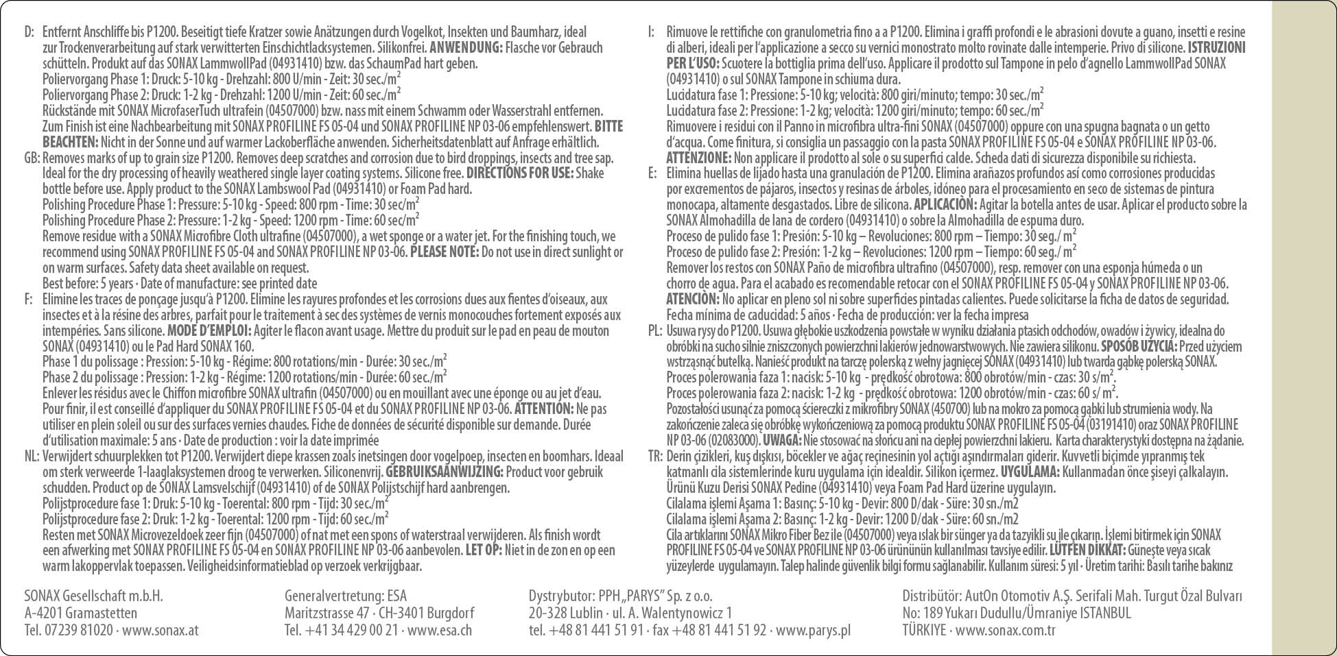 Silikonfreie Schleifpaste mit hohem Schleifmittelanteil zum Abschleifen von verwitterten und verkratzten Lackschichten. Entfernt Anätzungen, die durch Vogelkot, Insekten und Baumharz im Lack entstanden sind. Für alle Lackarten und -farben. Entfernt Staubeinschlüsse, Farbnebel, Schleifspuren. Bestens geeignet zur Restaurierung von verwittertem und verkratztem Lack. Hoher Abtrag bei gleichzeitig mittlerer Glanzwirkung. Entfernt Schleifriefen von Schleifpapier P1000.