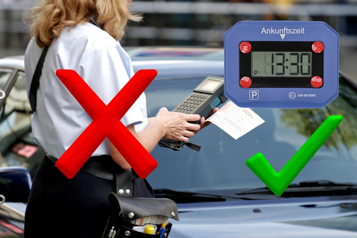 ▪ ELEKTRONISCHE PARKUHR MIT ZULASSUNG ist batteriebetrieben, wird unten an der Frontscheibe angebracht.